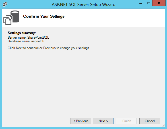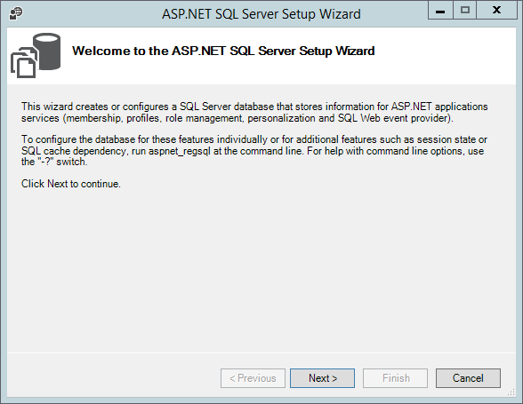 - After the ASP.NET SQL setup wizard opens, read the info and then click Next, like a boss!